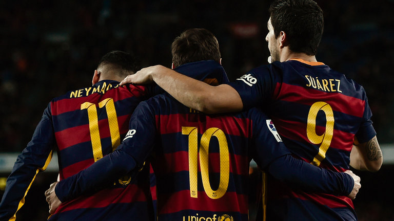 Luis Suarez dengan lima hattrick memimpin daftar pencetak gol untuk Barca menjadi 35 gol, Lionel Messi 27 gol dan Neymar 19 gol.